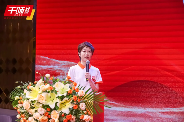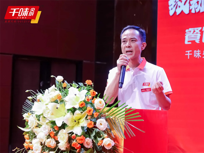董事長孫劍致辭,回顧了千味央廚的發展壯大歷程,肯定了千味人的不懈努力和取得的成績。他表示,千味央廚從銷售額五六億到實現A股上市,目前在全國擁有五大生產基地,銷售額近20億,更重要的是,打造了一支從研發到生產到銷售都能戰能勝的精英團隊。
