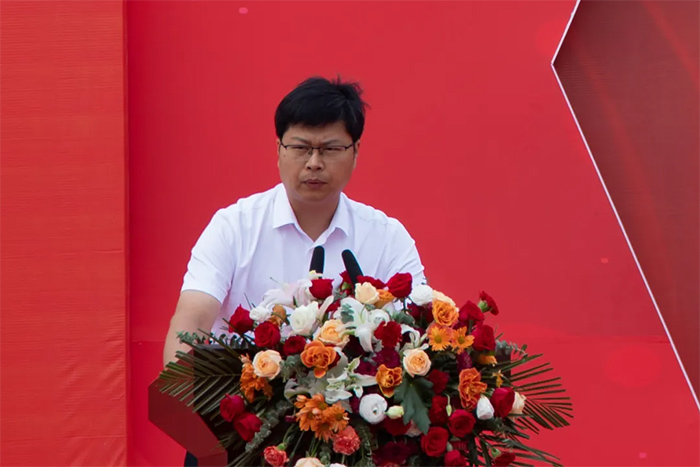 鶴壁百順源食品有限公司項目負(fù)責(zé)人秦興俊致辭,5個月18天,我們齊心協(xié)力完成了總部交給我們的艱巨任務(wù)。一號車間項目的投產(chǎn)只是開始,是新的起點,接下來日子里,我將繼續(xù)帶領(lǐng)團隊,發(fā)揚項目建設(shè)的奮斗精神,將一切歸零,堅持不懈的以高標(biāo)準(zhǔn)完成總部下達(dá)的生產(chǎn)任務(wù)。